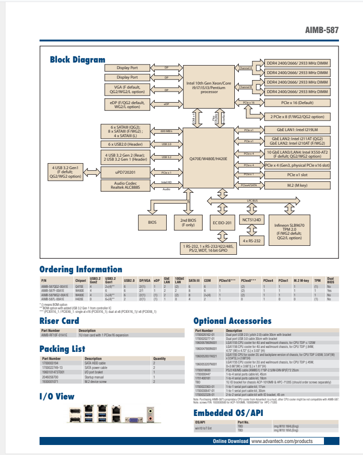 支持Intel 第十代Core i9/i7/i5/i3处理器,采用Intel H480E/W480E/H420E芯片组