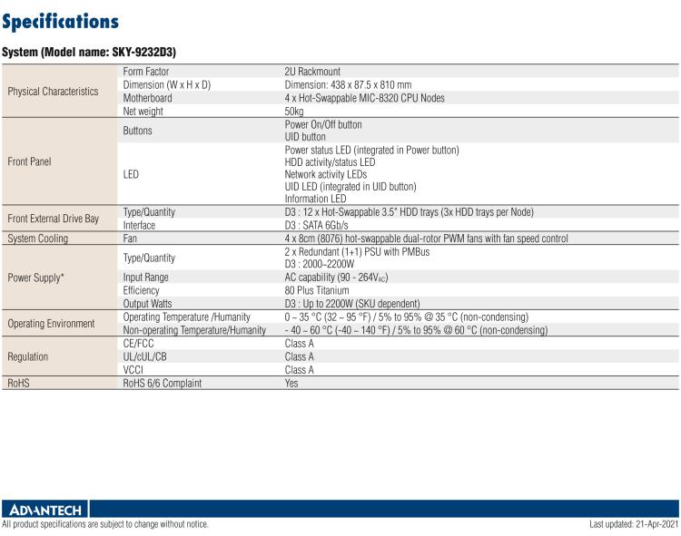 研华SKY-9232D3 2U 4Node Rackmount Server for Hyper-converged Infrastructure and Storage