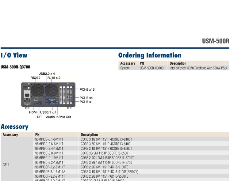 - USM-500R is a powerful edge workstation that features 3 x PCIe expansion slots supporting the integration of graphics cards and data capture cards for video recording and analysis. With the provision of multiple I/O ports, the workstation can be connected to diverse devices and optional peripherals.