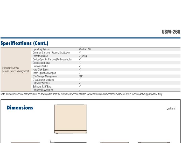 - USM-260是一台配备第六代Intel处理器的多功能微型计算机。紧凑型设计,多样化I/O接口,可整合多类外设,适用于半工业、零售、服务业等场域的广泛应用情境,例如:自助服务终端,收银POS终端,数字标牌播放盒,边缘计算机,AI应用等等。