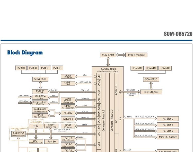 研华SOM-DB5720 COM Express® R2.1 Type 2 / 1 模块 开发板