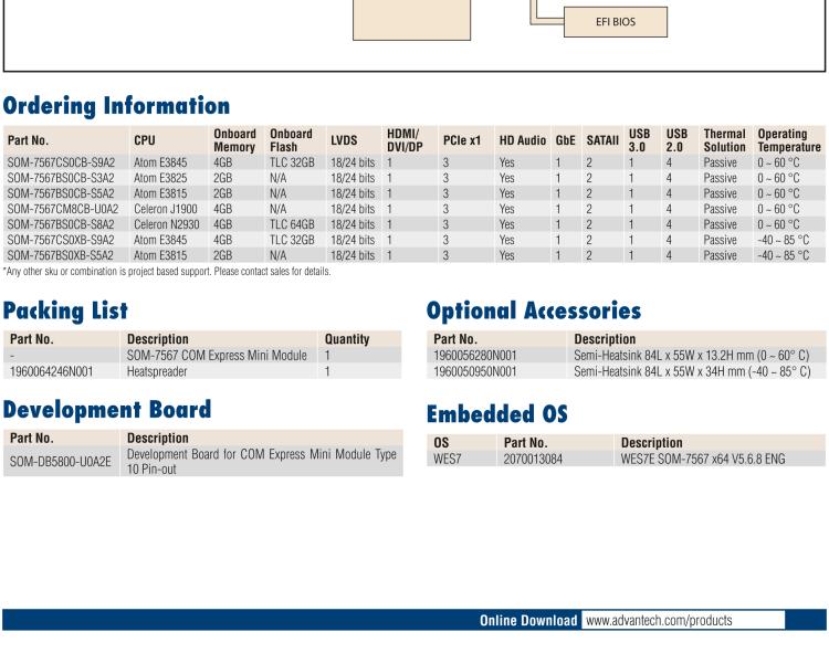 - Intel® Atom™/Celeron® 处理器,COM-Express Mini 模块。