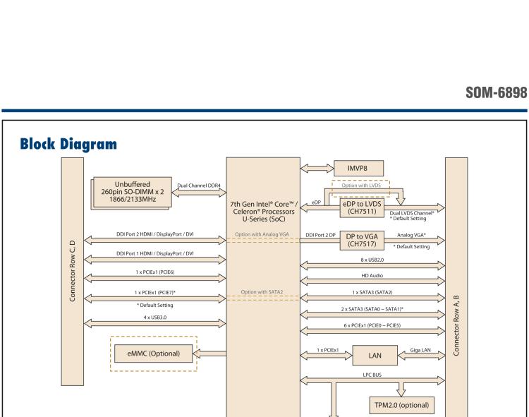 研华SOM-6898 第七代Intel Core/Celeron处理器 COM Express Compact模块Type 6