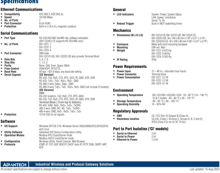 研华EKI-1222I 宽温型 2端口Modbus数据网关