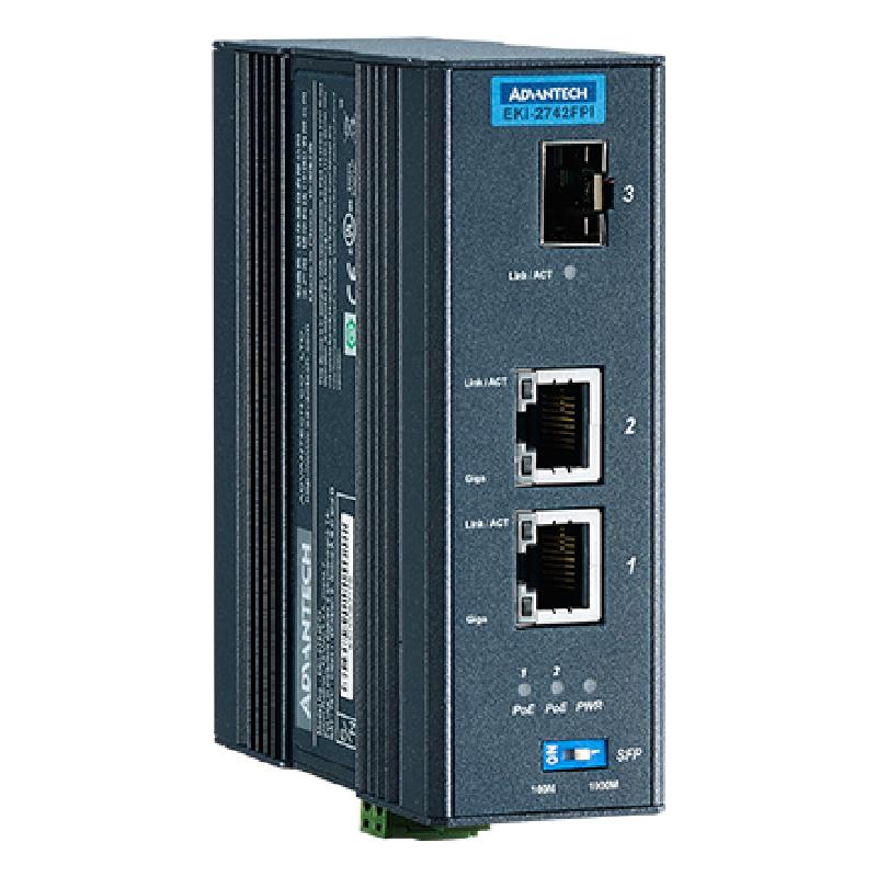研华EKI-2742FPI 2GE PoE, SFP Injector ,IEEE802.3af/at, 48VDC, -40~75℃