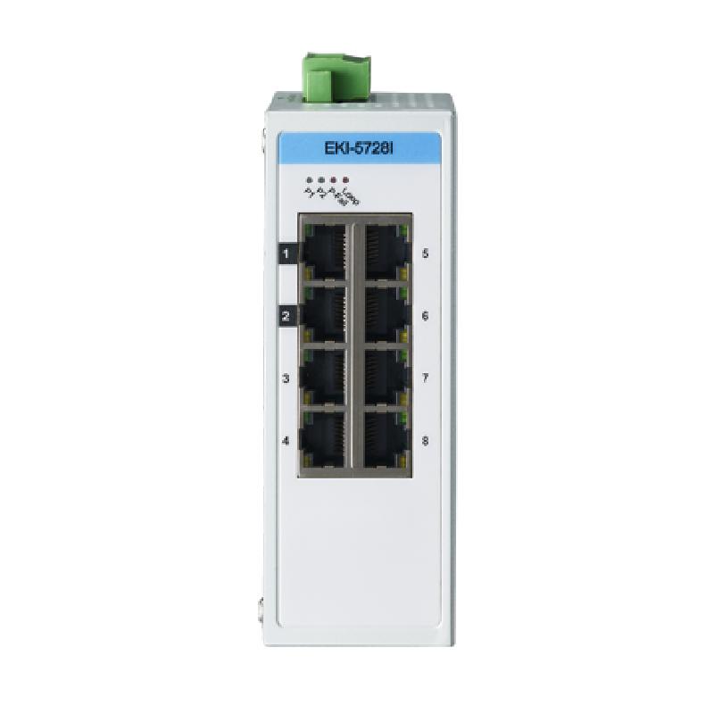 - EKI-5725/I及EKI-5728/I是全球首款兼备工控与IT双重特质的非管理型工业以太网交换机。其支持Modbus/TCP及SNMP协议,可无缝连接SCADA系统及IT网管软件,该款产品符合IEEE 802.1p QoS- VIP 端口- 确保关键数据的可靠传送。此外,其拥有专用VIP端口、自动环路故障检测、智能节能、智能故障诊断及支持9,216 byte 巨型帧高效传输,支持8.4 ~ 52.8VDC冗余电源输入及-40~75° C 宽工作温度范围,保障严苛环境中的稳健运行,适用于智能工厂、视