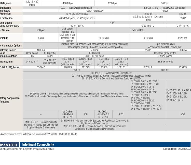- 该产品为一款工业级四端口USB集线器。它的设计和测试符合重工业EMC标准,并获得UL C1D2认证。高稳固力USB连接器可牢固固定标准USB电缆,非常适合高振动应用,需要高达3.2磅的力才能断开连接。该产品在上游和下游USB端口之间具有4 kV隔离,以保护昂贵的设备免受危险的接地回路的影响,并有助于确保数据的完整性。 重型工业EMC规范允许这些集线器在标准办公室级集线器出现故障的情况下运行,例如近变频驱动器、电机控制中心、焊接和其他大型电气负载。
