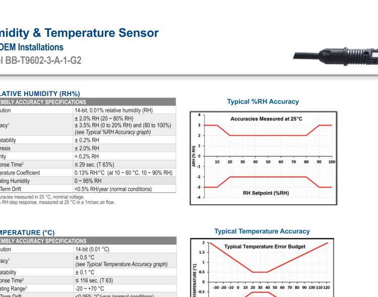 - Precision & accuracy (±2% RH, ±0.5 °C, 14-bit resolution)