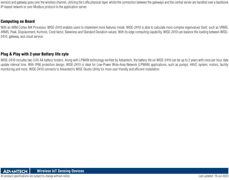 - WISE-2410SK is a ready-to-use LoRaWAN wireless condition monitoring solution. This package includes a WISE-2410 vibration sensor, WISE-6610 LoRaWAN gateway, magnetic base and 2 batteries for WISE-2410, and also an AC to DC adapter for WISE-6610.