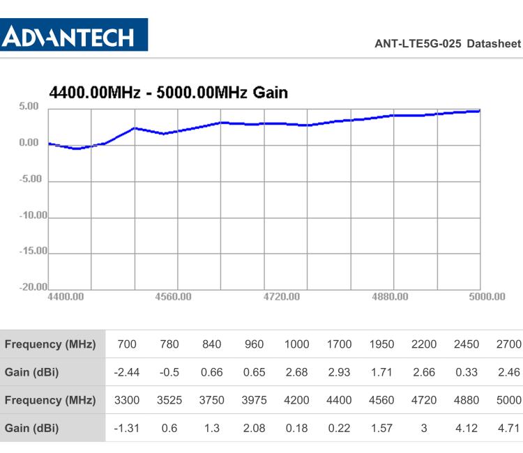 - Frequency range 698–960 MHz, 1710–5000 MHz