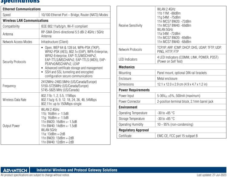 - 10/100 Mbps to 802.11a/b/g/n dual band (2.4 GHz, 5 GHz)
