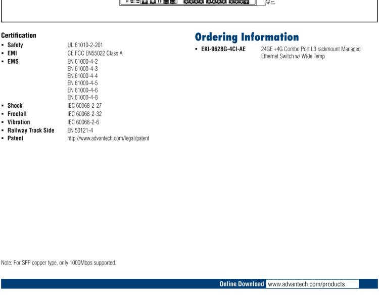 研华EKI-9628G-4CI 24GE+4G Combo端口 机架式三层工业以太网交换机,-40~75℃