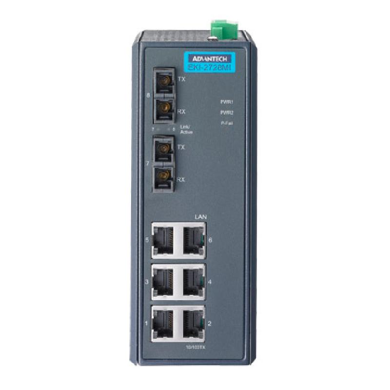 研华EKI-2728M 6GE+2G多模光纤端口非网管工业以太网交换机