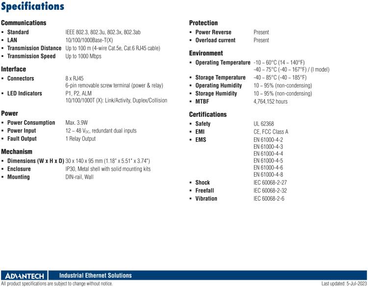 研华EKI-2728 8 端口全千兆非网管型工业以太网交换机