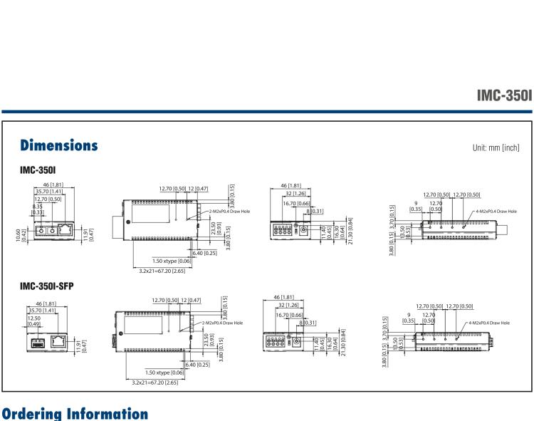 - Industrial grade design that supports an extended operating temperature (IMC-350I series)