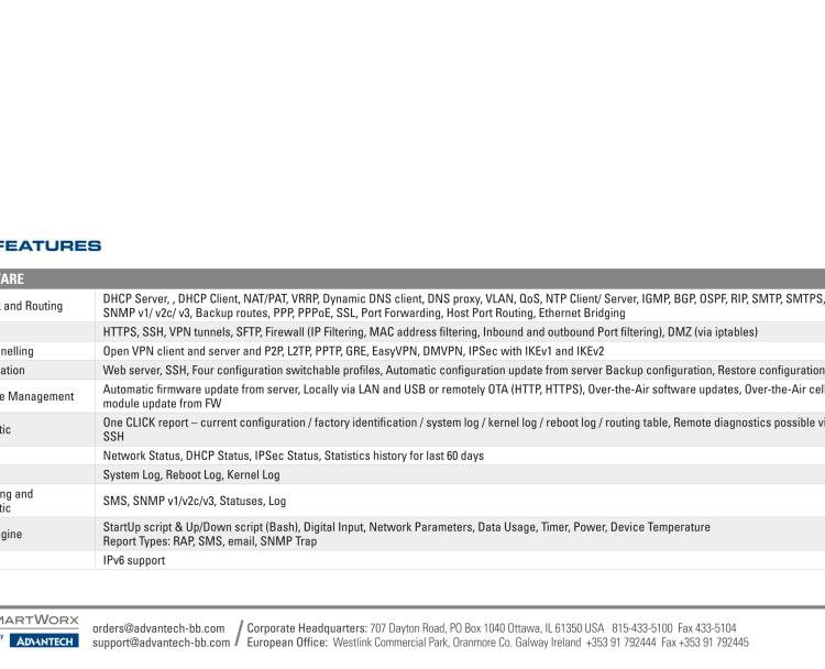 - LTE cat.3, 3G/HSPA+, GPRS/EDGE, NAM, 2x SIM