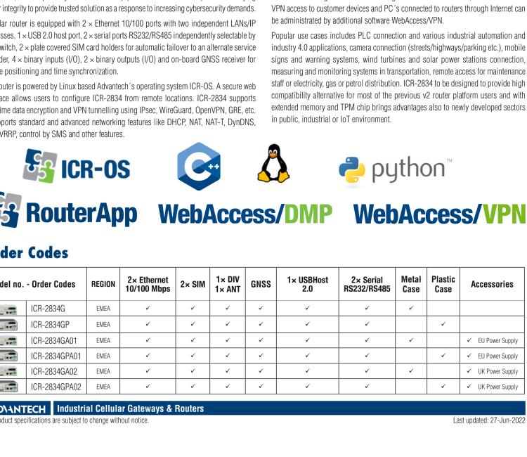 研华ICR-2834GA01 ICR-2800, EMEA, 2x Ethernet, 2× RS232/RS485, USB, GPS, Metal, EU ACC