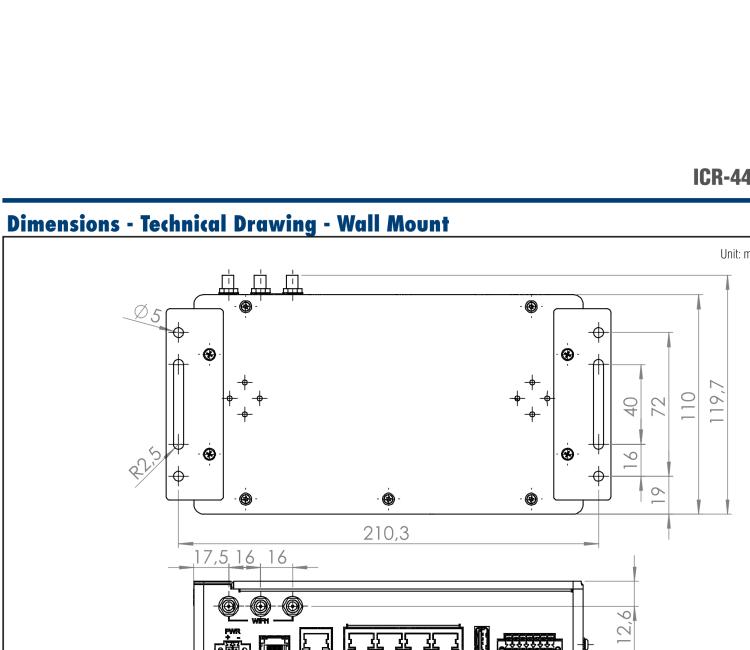 - 5× Gigabit Ethernet, 4× POE+ PSE (PoE use is limited – see the ICR-4401 user manual)