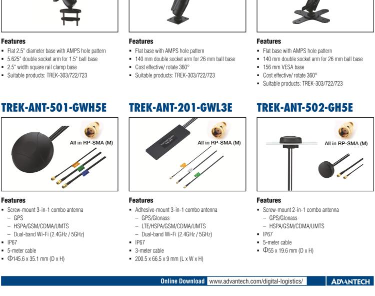 - MicrosoftInternetExplorer402DocumentNotSpecified7.8 磅Normal0 研华安装套件是将MDT(移动数据终端)安全移动到车辆上的选择。安装套件配有两个板和双插座臂,可承受有破坏性的冲击和振动。它们专为抵抗高达40G,11ms(MIL-STD-810G)或100G,6ms(EN60721-3-5)的冲击而设计,并且即使在极端恶劣的条件下也能够牢固地保持MDT。MDT的视角和位置通过双插座设计完全可调。所有RAM组件都是可互换的,所以如果您决定将项目从一个车辆切换到另一个车辆,只需用旋钮旋转即可。有许多不同的、非破坏性的RAM安装基座,可以快速连接和配合不同的车厢,并已经被Toyota,CAT,Daewoo,Komatsu,Yale,Hyster,Clark,Mitsubishi,Nissan等许多车辆进行了测试。