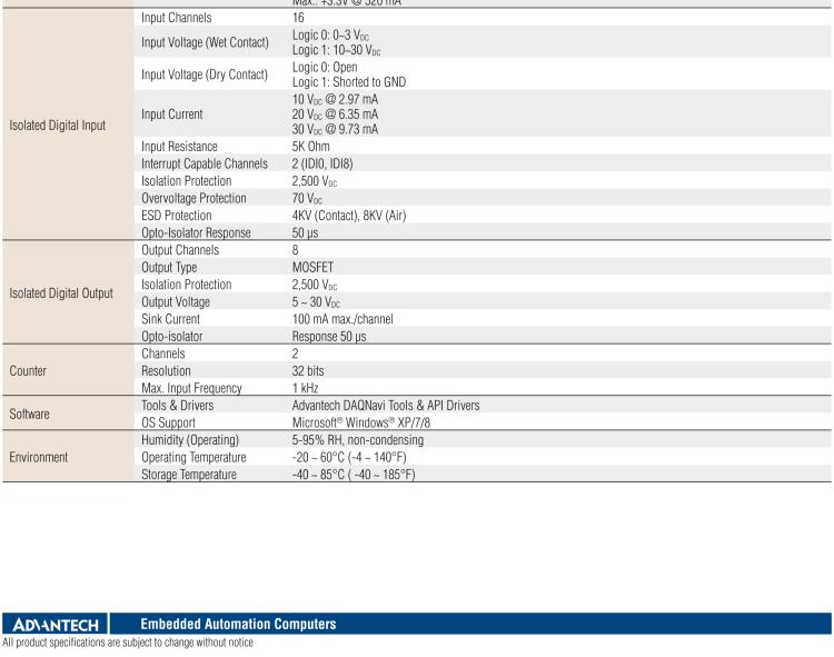 - Meets Advantech Standard iDoor Technology
