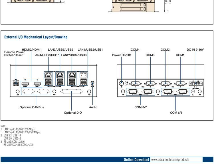 - Support up to 4GbE, 8USB, 8COM, 16bit DIO, 2CANBus, TPM2.0