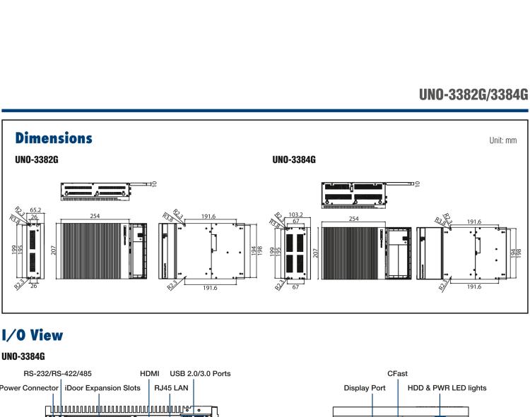 - 2 x GbE, 2 x USB 2.0, 2 x USB 3.0, 1 x RS-232/RS-422/485, 1 x HDMI, 1 x DP, 1 x Cfast, 2 x PCI/PCIe, 2 x mPCIe (2 x full)