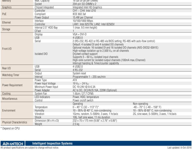 研华AIIS-1240 机器视觉工控机,支持英特尔酷睿™ i7/i5/i 3 CPU,有源以太网紧凑型系统, 4通路千兆网供电