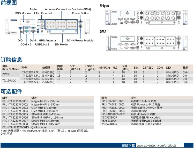 研华ITA-5231W 英特尔®第六代酷睿™i处理器无风扇系统;符合EN 50155的铁路应用