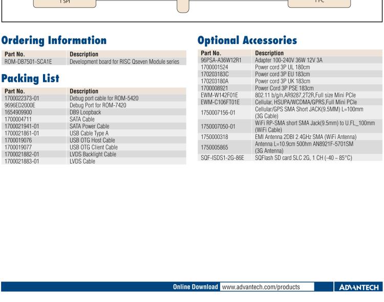 研华ROM-DB7501是适用于 Q7 v2.0 标准核心板的全功能底板。可搭载ROM-7421核心板。 研华提供设计资料与技术支持,让测试和构建原型更快速。