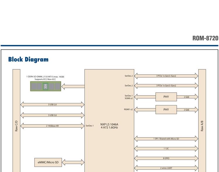 - 10GBase-KR x2, GbE up to 4, PCIe 1x x3, USB 3.0 x3, USB 2.0.x3, SATA V3.0 x1