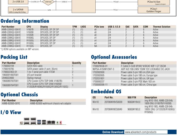 - 支持1 x PCIe x8,1 x PCIe x1,2 x M.2,6 x COM,4 x USB 2.0,2 x USB 3.1 Gen2