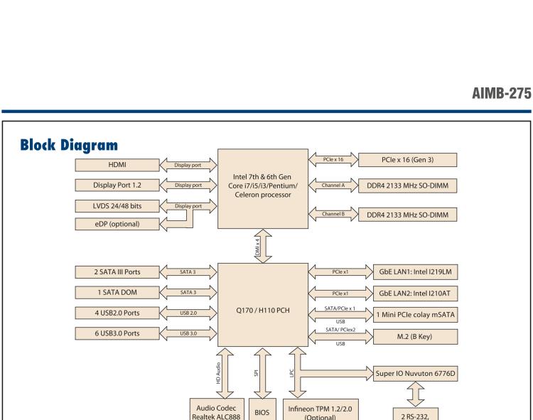 - 支持Intel® 第6/7代 Core™ i 处理器和Q170/H110芯片组