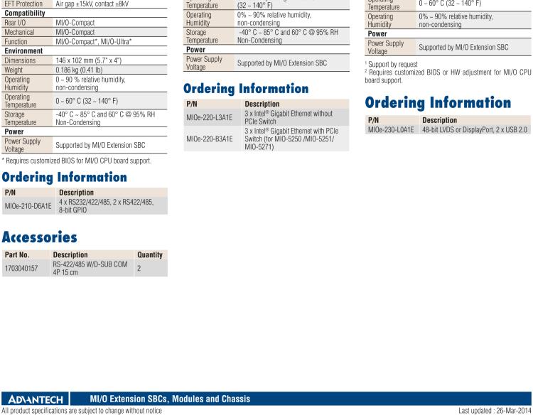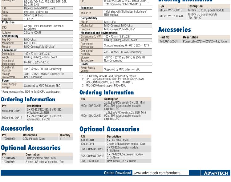 研华MIOE-110 2 x RS-232, 2 x RS-232/422/485 (带5V/12V电源及隔离), 2USB 2.0,兼容2.5寸MIO单板