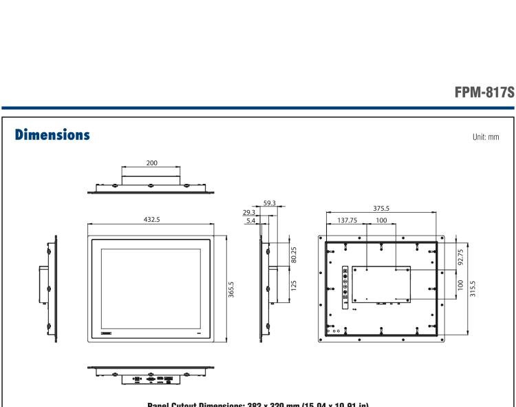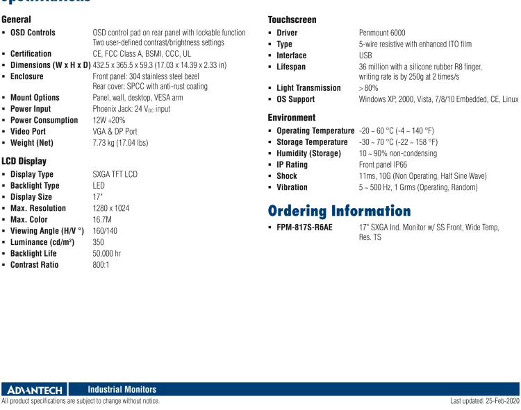 研华FPM-817S 17“英寸工业显示器与电阻触摸控制,直接VGA, DP端口,和304不锈钢前面板