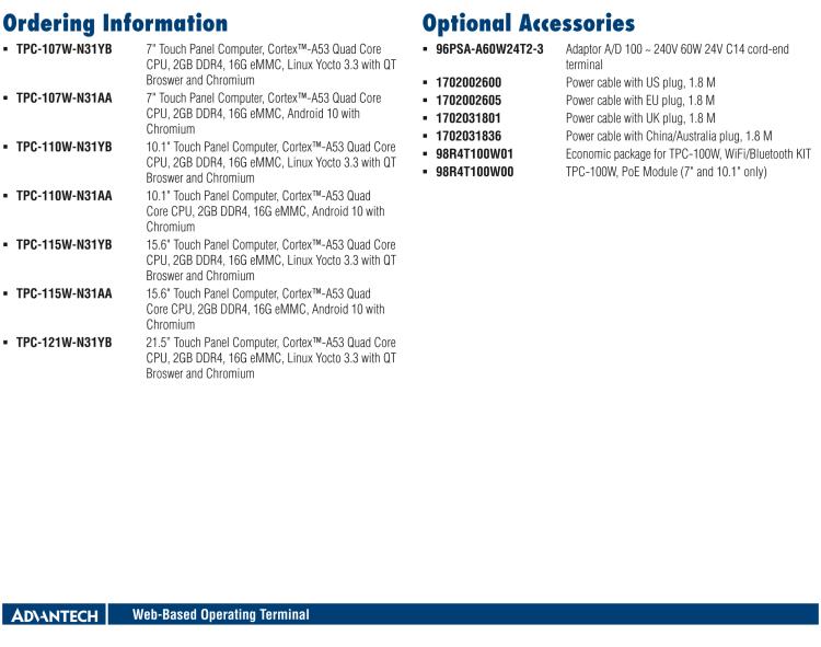 - TPC-115W 搭载 NXP® Cortex™-A53 i.MX 8M Mini 四核处理器。 包含 VNC 和浏览器可实现快速 Web 应用程序开发和轻松配置。