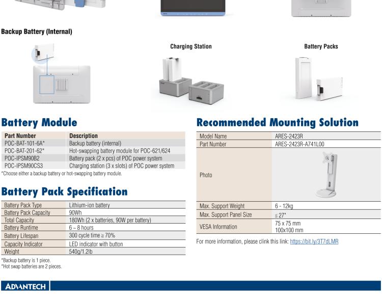 - 可选热插拔电池,电池容量可达 180Wh ,用于移动应用