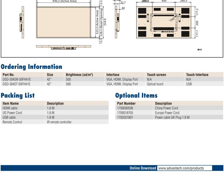 研华DSD-3042 42" FHD工业级数字标牌显示器 & 触摸屏