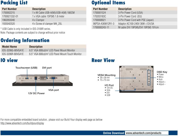 研华IDS-3206 6.5" VGA工业级面板安装显示器