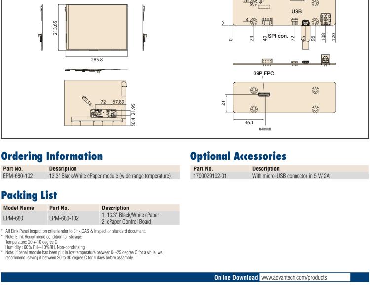 研华EPD-660-101 EPD-660, 662电子纸解决方案支持2.4GHz射频无线协议,集成在13.3英寸显示器解决方案中。