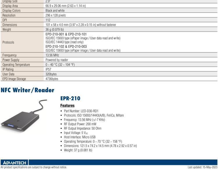 研华EPD-210 2.9" 电子纸解决方案,NFC、无电池,用于仓库、物流箱和名片。