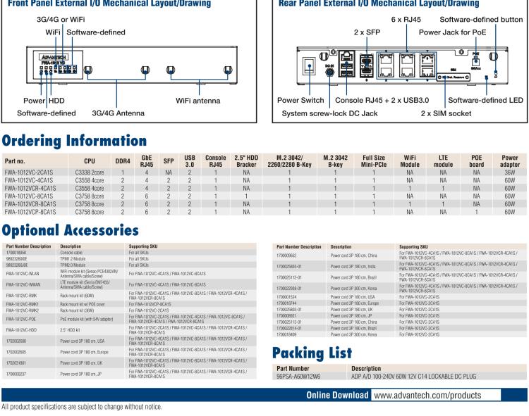 研华FWA-1012VC 基于Intel® Atom™ C3000系列 专为VE-CPE和SD-WAN场景设计