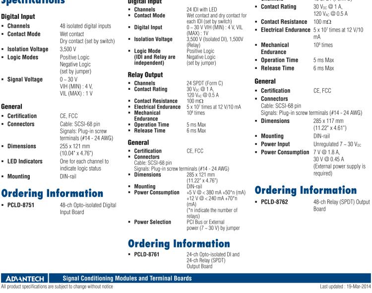 研华PCLD-8761 24继电器和24通道隔离D/I板