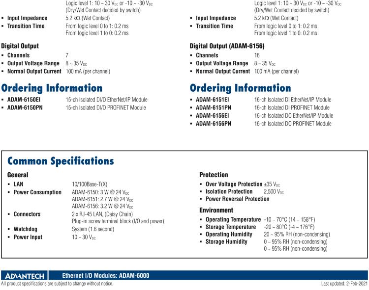研华ADAM-6150PN 15通道隔离数字输入/输出PROFINET模块
