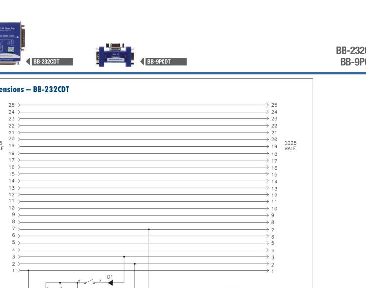 研华BB-232CDT 串口数据监听器,RS-232,DB25 公头至DB25 母头加DB25 母头监视器