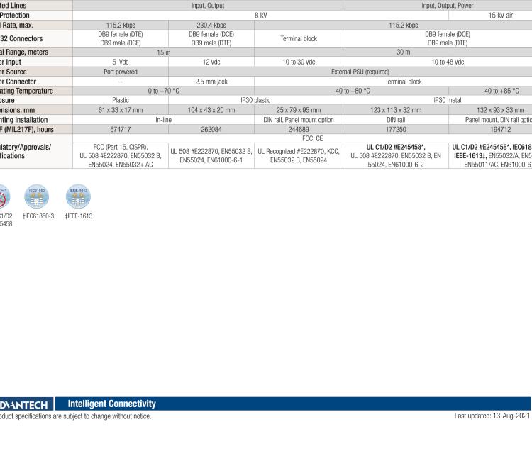 - 该产品隔离并保护RS-232设备免受雷击、意外高压短路和接地回路的影响。RS-232数据信号TD、RD、RTS和CTS数据传输速率高达230.4 kbps。隔离电路的额定电压为2.5 kV,可保护有价值的设备,同时保持持续的正常运行时间。隔离器的每一侧都从单个12 VDC电源接收电力,以保持隔离。这种供电配置允许设备在只有一个电源的系统中使用,而不考虑RS-232端口提供的电源。隔离器使用DB9公接头和DB9母接头。母连接器作为DCE连接,应连接到DTE端口。公连接器是DTE,应连接至DCE端口。如果要将DTE连接至DTE或将DCE连接至DCE,则需要一个零调制解调器适配器。